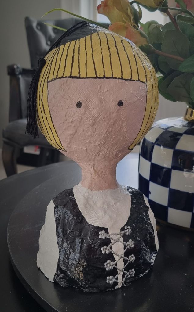 Þegar pabbi var jarðaður þá varð slatti af grafarljóðum eftir. Ég vildi endurnýta pappírinn og gera eitthvað úr honum til minningar um afa fyrir börnin okkar Siggu systir. Útkoman eru þessar fígúrur ur pappamassa og gifsi. Að sjálfsögðu eru þær merktar Sambandinu en við systur ólumst upp í sterkum Kaupfélagsanda…