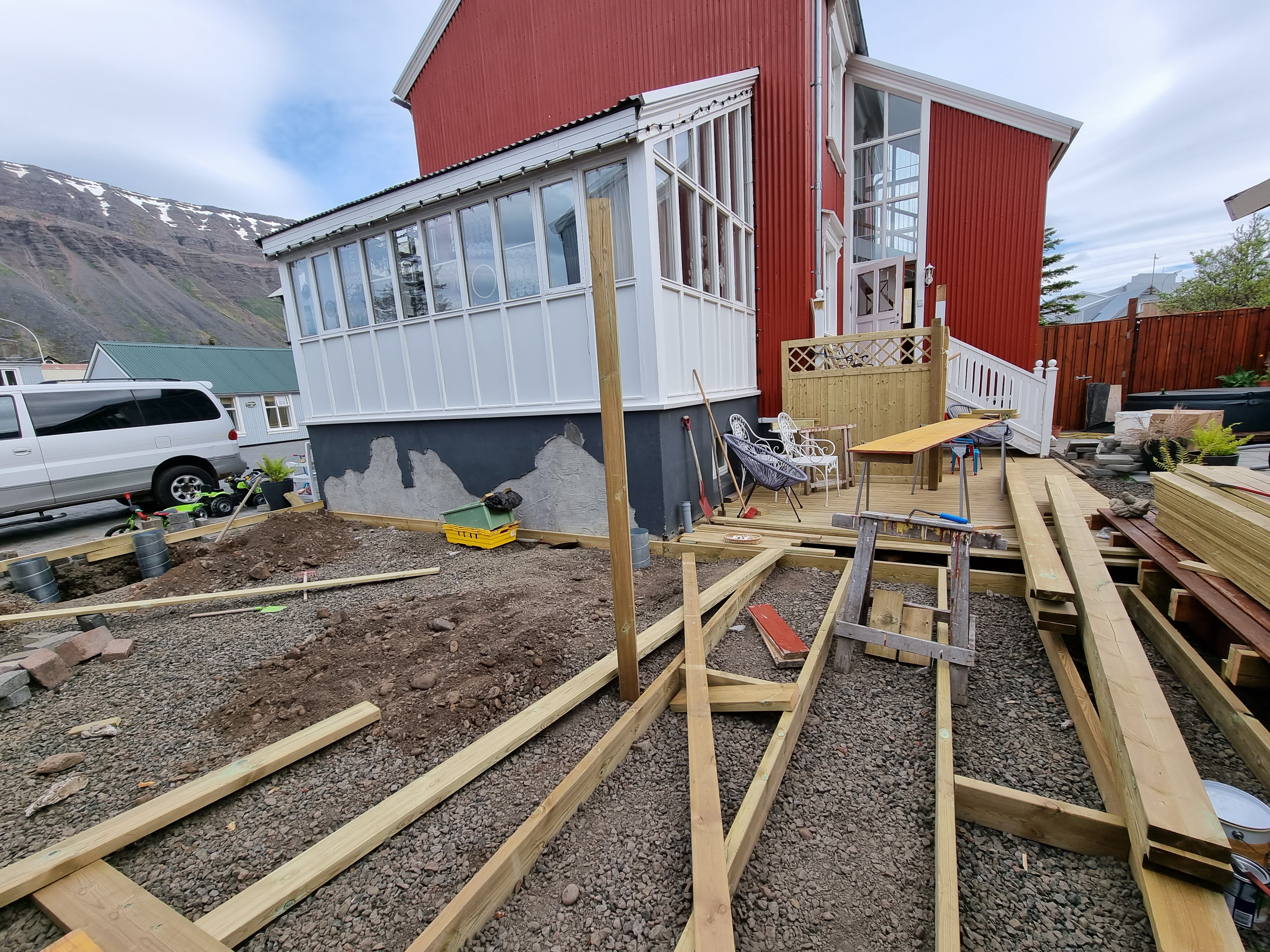 …við hjónin höfum puðað við pallasmíði þetta sumarið og nú er farið að hylla undir að hægt sé að njóta….