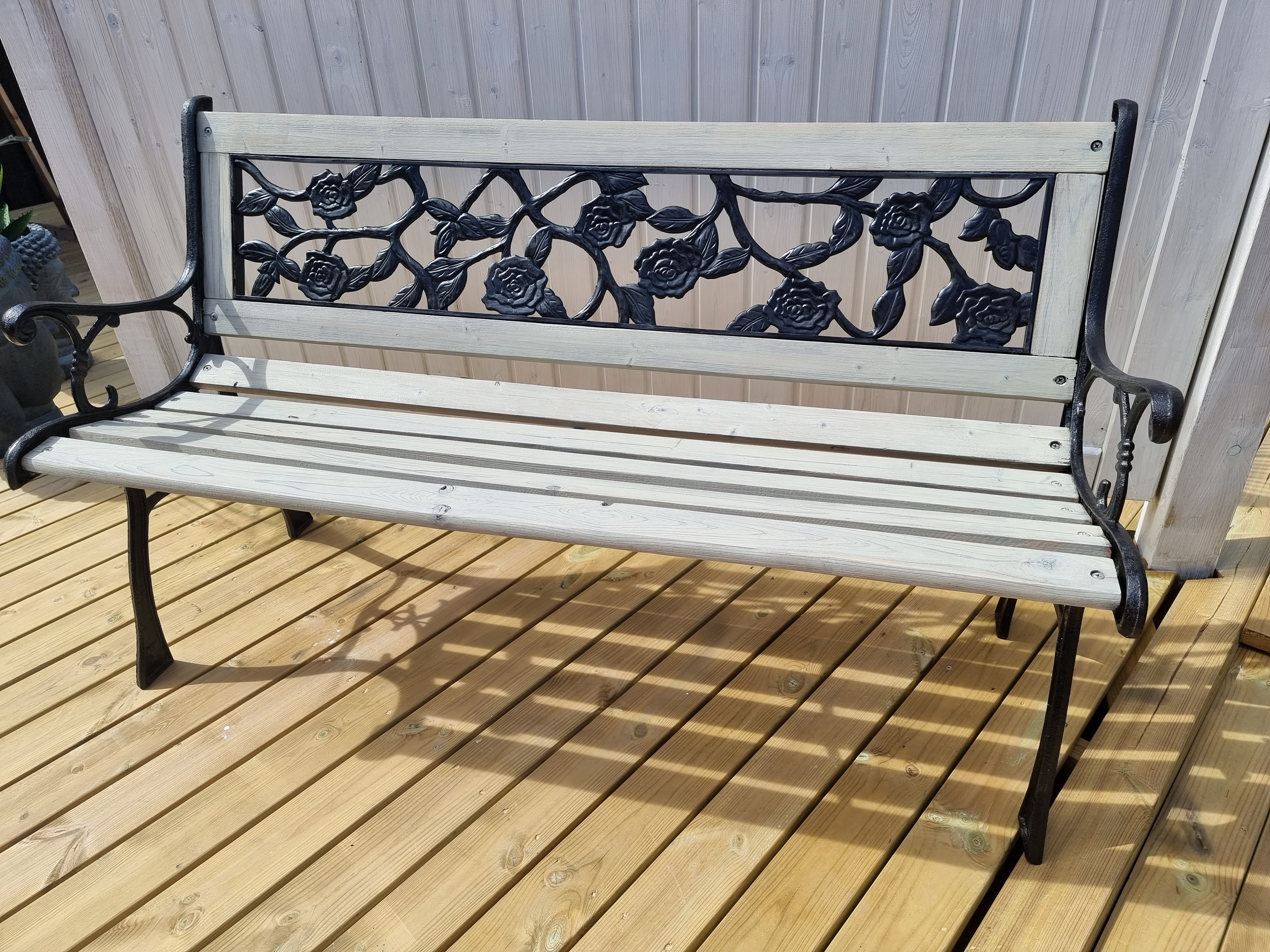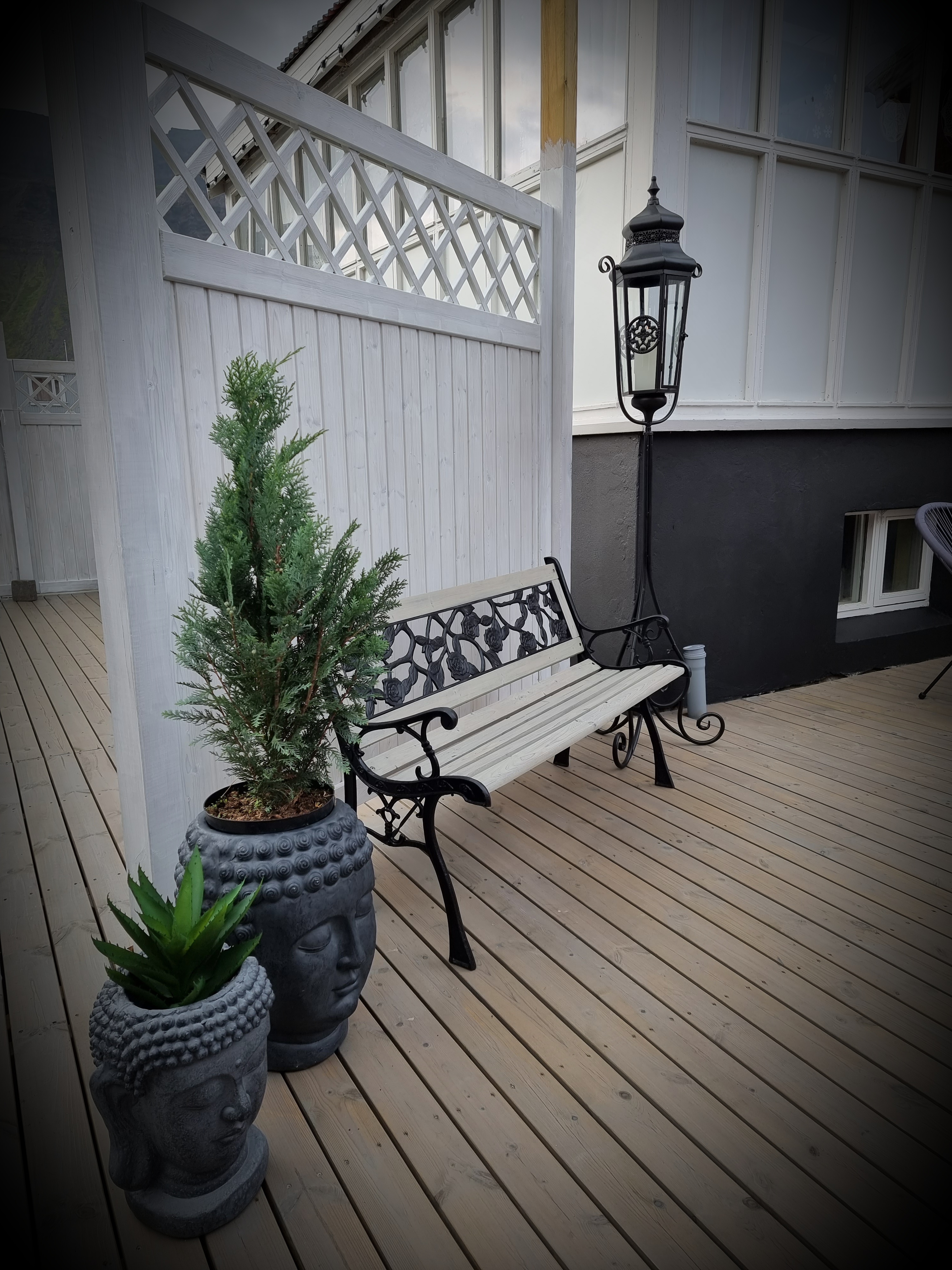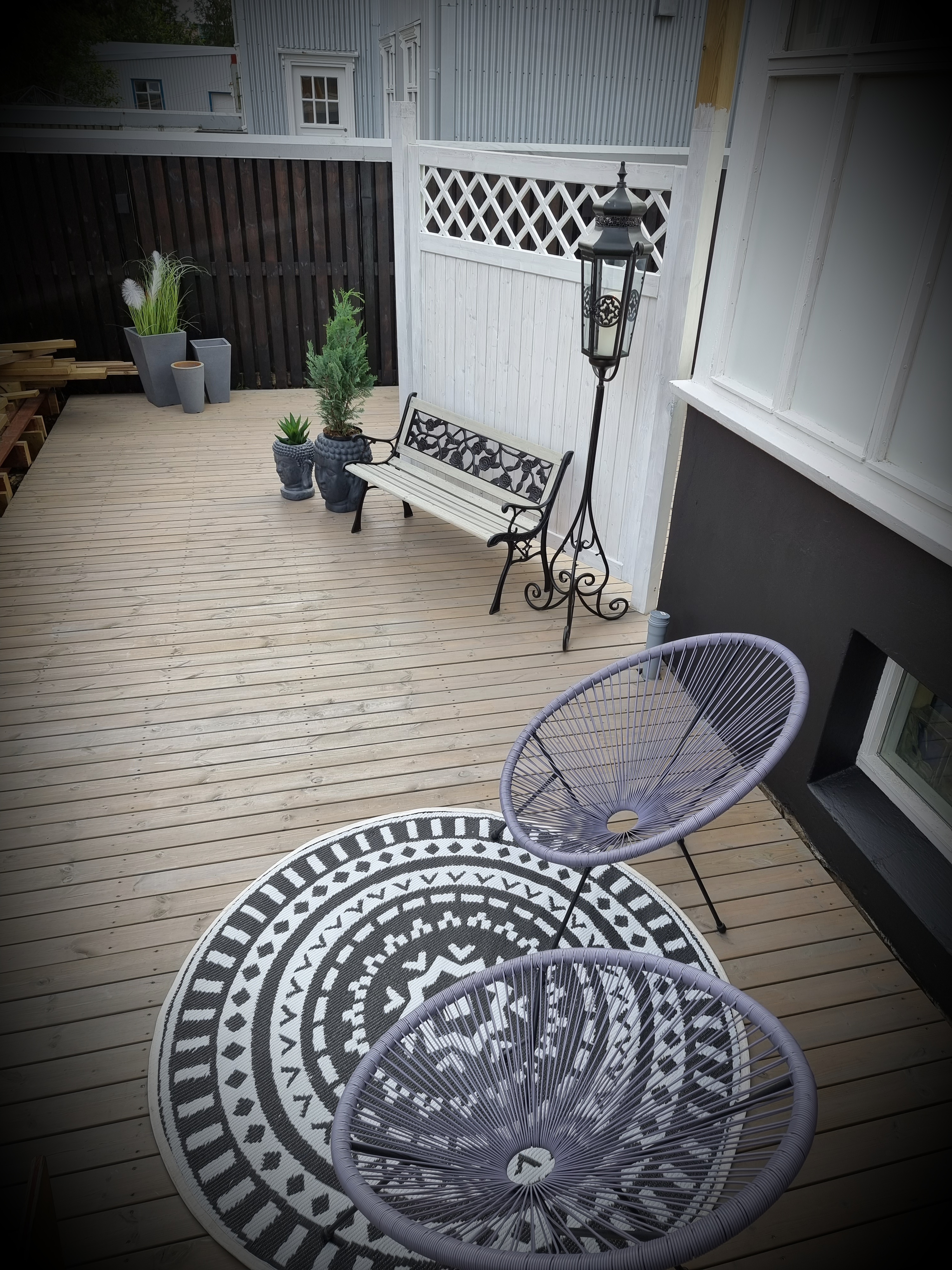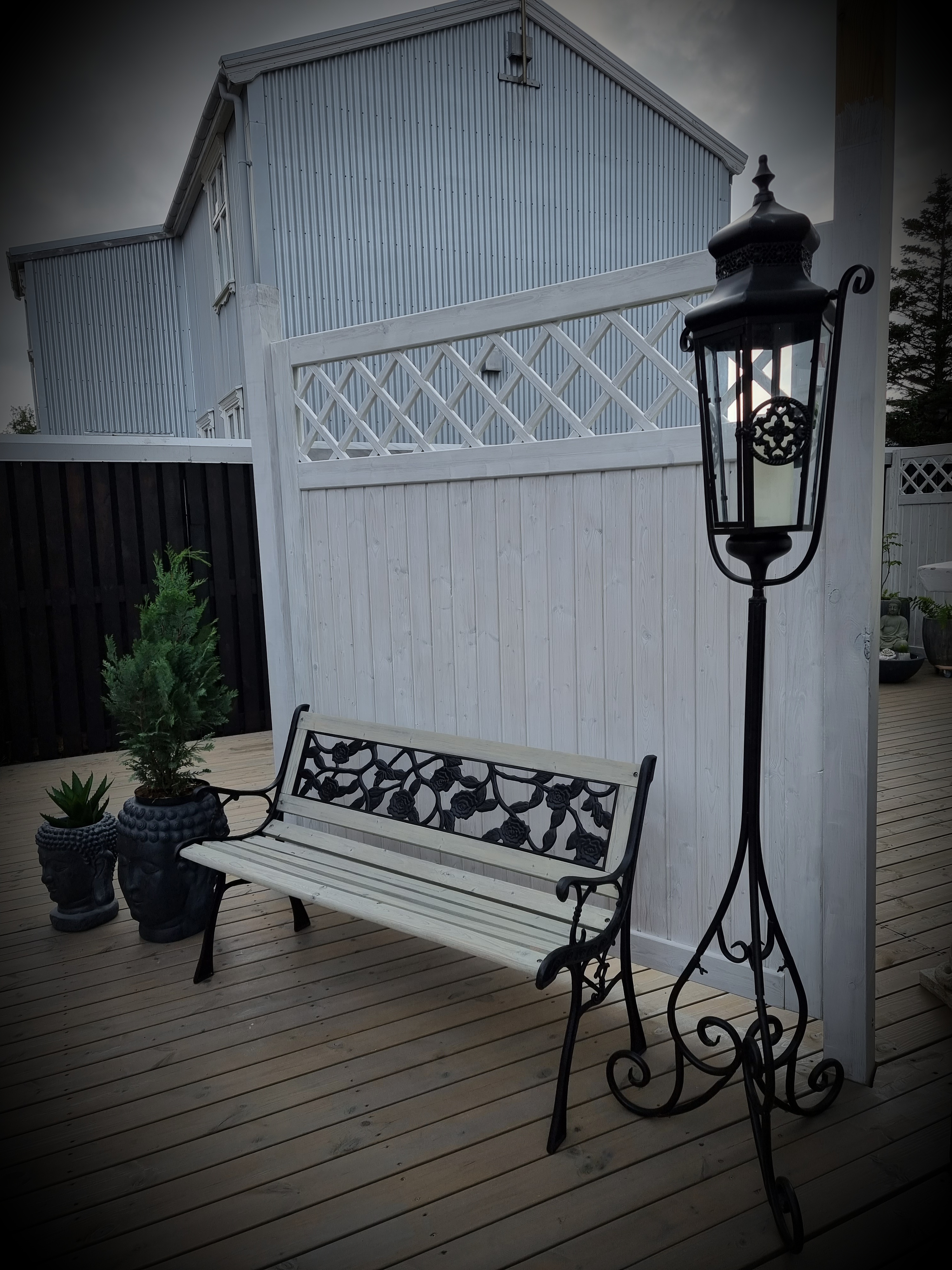 Nú er pallasmíðin og sjænið í kringum það allt, á loka metrunum. Við vitum þó að síðustu metrarnir geta verið drjúgir… 😉 Mig langaði i stiga utaná skúrinn og smá bekk, ég fékk því húsbóndann með mér í lið og við klömbruðum þetta saman.