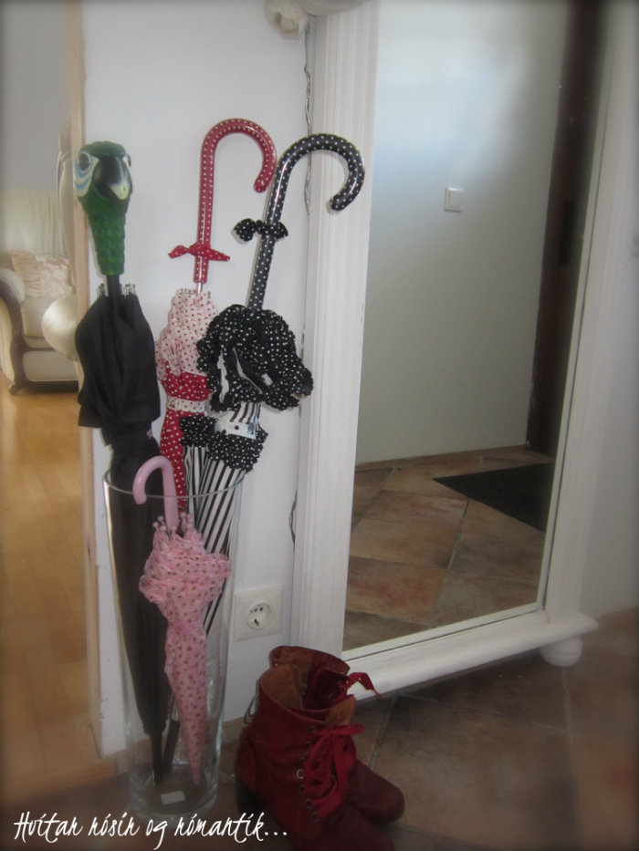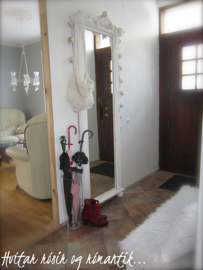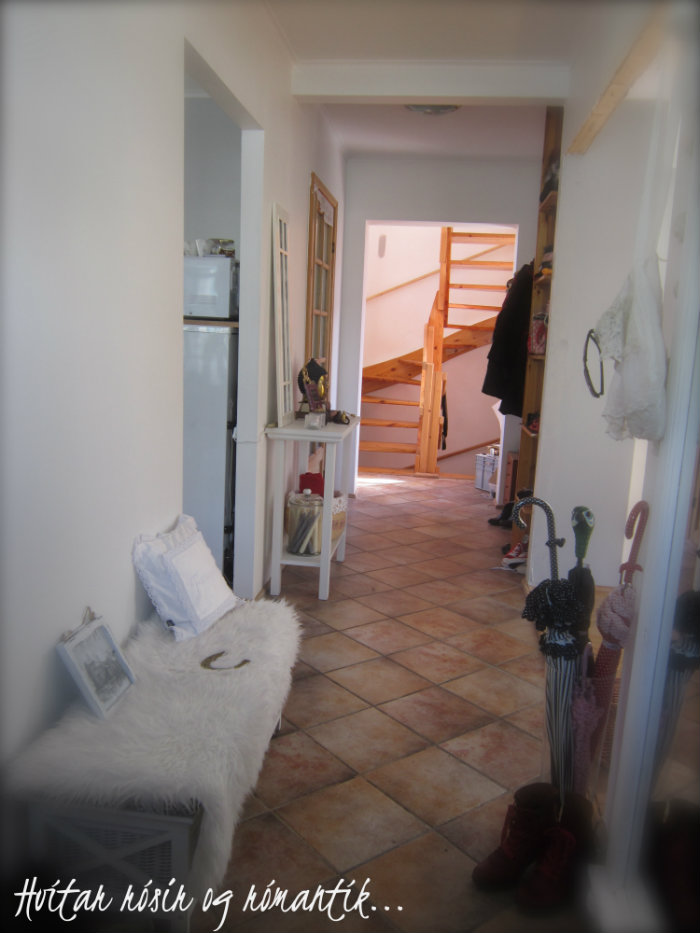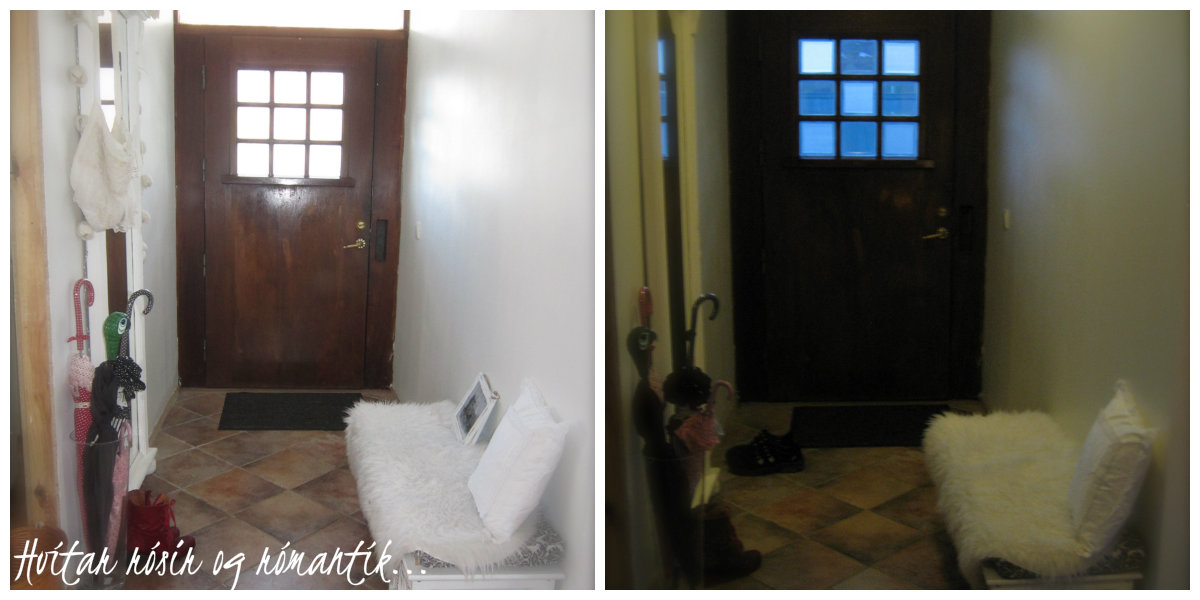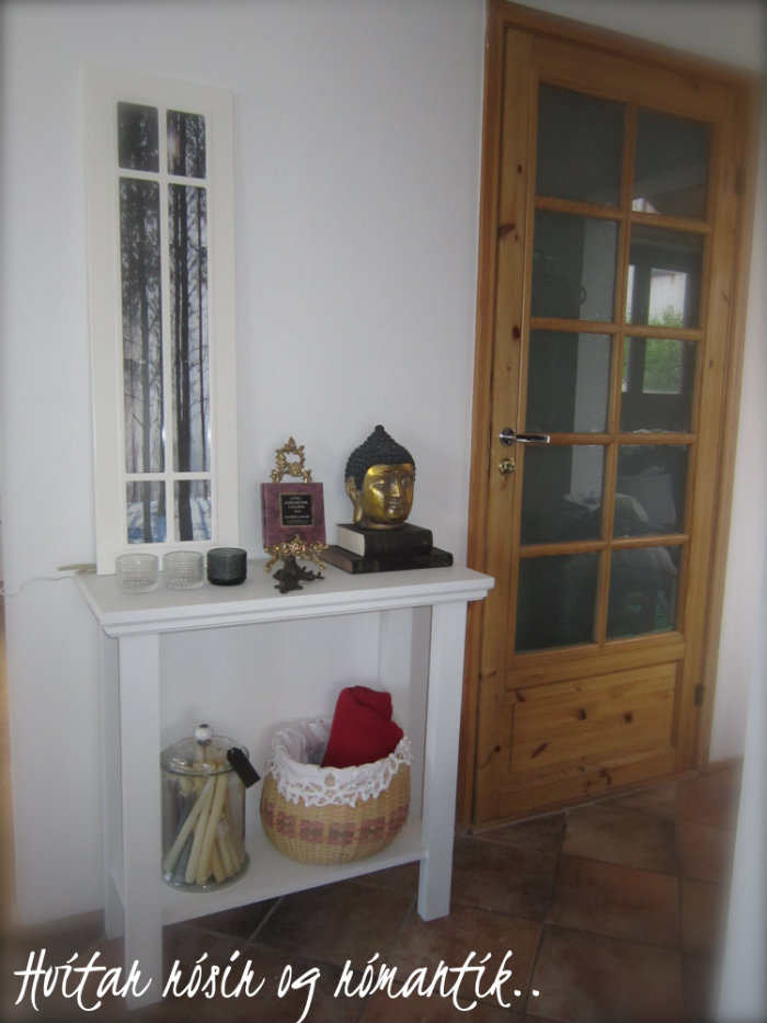 Þessir glerdropar voru keyptir í Blómaval, með það í huga að hella inn í þá hvítri málningu. Mér finnst þeir koma æðislega vel út -Frúnni langar reyndar í einn í viðbót til að hella inn í hann öðru lit…